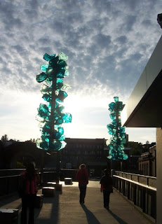 After getting hyper and sugared up, we thought we should go somewhere quiet, with lots of breakable stuff, where we could be inconspicuous. Luckily the Museum of Glass is across the street. The giant aqua columns on the bridge kinda reminded me of rock candy. Guess that sugar-buzz was still in effect.