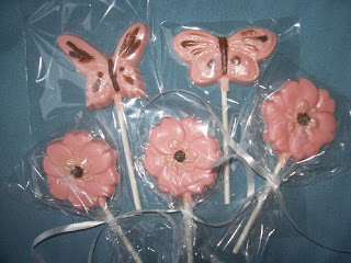 One of my favorite new acquisitions is a mold to make flower and butterfly lollipops. A little hand painted (chocolate) detail and some luster dust (think glitter) and these are ready for spring.